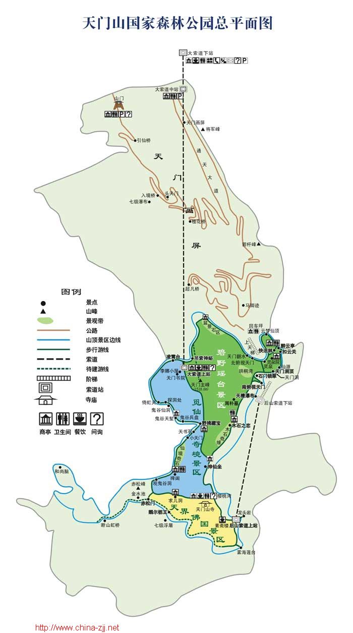 現(xiàn)在位置:張家界旅行社->交通指南->旅游地圖 -> 天門山旅游圖_天門山游覽平面圖