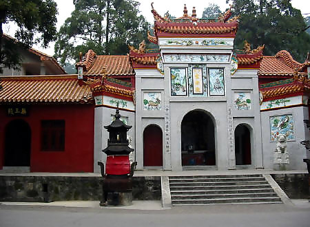 在岳麓山半腰,系晉初古寺,是佛教人湘最早的一所大寺。明神宗時(shí) 更名為萬壽寺,民國(guó)初年復(fù)名,古麓山專。唐代大詩人杜甫曾用“寺門高開 洞庭野,殿腳插入赤沙湖”的詩句稱頌殿字宏大。大雄寶殿等主要建筑,于 1944年被炸毀,僅存山門和觀音閣,現(xiàn)已修整一新.山門上有“古麓出寺” 的橫額,兩旁為“漢魏最初名勝,湖湘第一道場(chǎng)"對(duì)聯(lián),門外古楓參天,濃 蔭覆蓋,門內(nèi)園圃百花爭(zhēng)艷。觀音閣為磚木結(jié)構(gòu),1955年曾加以修葺,1980 年再次修整恢復(fù)原貌,并在廳堂神龕中置觀音像。閻內(nèi)常舉辦小型書畫展 覽。觀音閣前有兩株羅漢松,左邊一株是六朝遺跡,稱“六朝松",樹 齡在1700年以上, 是岳麓山植物界的"元老", 老干新枝,紛繁翁 郁,彌足珍貴;右邊一株于清代被巨風(fēng)拔去并被清代人補(bǔ)植。兩棵古松 并峙于閣前,游人樹下經(jīng)過,若入關(guān)隘,故有“關(guān)松"之稱。