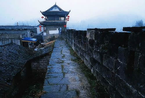 城墻上部為鋸鑿形狀,箭垜300個,還有兩座外突的炮臺。站在炮臺之上,遙想當(dāng)年,箭垜旁刀戟林立,炮臺上人影浮動,還有城外山頭的碉樓狼煙滾滾,仿佛還看見刀劍交接之影,聽見搏殺呼號之聲,剎那間產(chǎn)生一種悲壯感。1983年10月黃絲橋古城被列為省級重點文物保護單位。