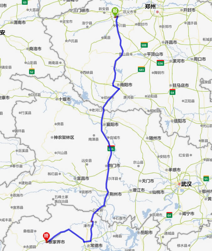 洛陽(yáng)去張家界自駕車(chē)自助游線(xiàn)路圖全程高速):