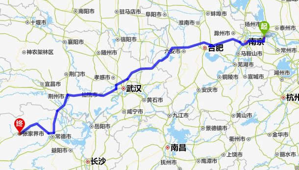 鎮(zhèn)江去張家界自駕車自助游線路圖全程高速):