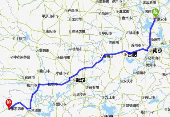 淮陰去張家界自駕車自助游線路圖全程高速):