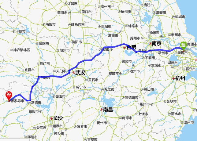 常熟去張家界自駕車(chē)自助游線路圖全程高速):